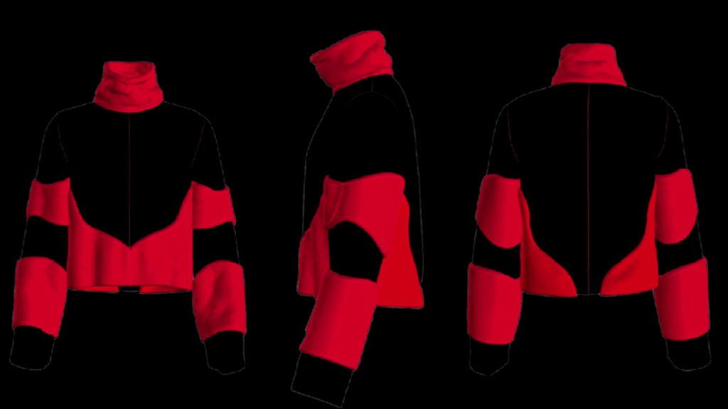 Los materiales técnicos, los acolchados y los cortes geométricos otorgan carácter y volumen, mientras los contrastes entre negro y rojo evocan pasión, deseo y sofisticación.